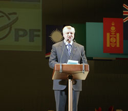 В своей речи Председатель Совета Федерации, Председатель АТПФ Сергей Миронов остановился на значении Азиатско-Тихоокеанского региона для России, назвав его огромным. Две трети нашей страны расположены в Азии, напомнил российский спикер. Курс на развитие разнопланового сотрудничества со странами региона это естественный и осознанный выбор России, наша долгосрочная стратегическая линия, заявил С.Миронов.