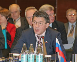 Во второй половине дня Сергей Миронов провел первое пленарное заседание сессии, которое состоялось в Центре международной торговли. На нем обсуждались вопросы укрепления сотрудничества в области политики и безопасности, борьбы с терроризмом, незаконным оборотом наркотиков и организованной преступностью, пути укрепления мира и развития сотрудничества в Северо-Восточной Азии.
