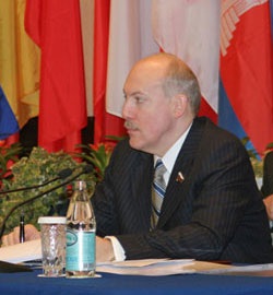 Глава верхней палаты Федерального Собрания РФ подчеркнул, что в последние годы происходит последовательное наращивание масштабов и диверсификации торговли России с большинством стран региона. В 2006 году страны АТР вышли на второе место после Евросоюза среди главных торговых партнеров России. Особенно активно, по его словам, развиваются торгово-экономические связи со странами АТР у восточных регионов России.